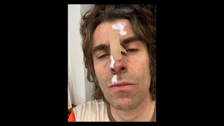 Liam Gallagher publicó una foto suya en la que se lo ve ensangrentado, con una curita que le cubre la nariz y varios rasguños, después de caerse "de un helicóptero", según él mismo dijo.