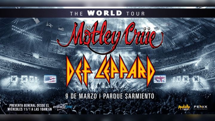 Tanto lo deseamos que finalmente tenemos la noticia. Las leyendas del rock más icónicas y célebres del mundo, MÖTLEY CRÜE y DEF LEPPARD, se presentarán el jueves 9 de marzo en Parque Sarmiento en el marco de su exitosa gira conjunta "The World Tour". La preventa general será a partir del miércoles 11 de enero a las 10am en www.entradauno.com a precio especial con cupos limitados. Una vez agotada la preventa comenzará la venta general.