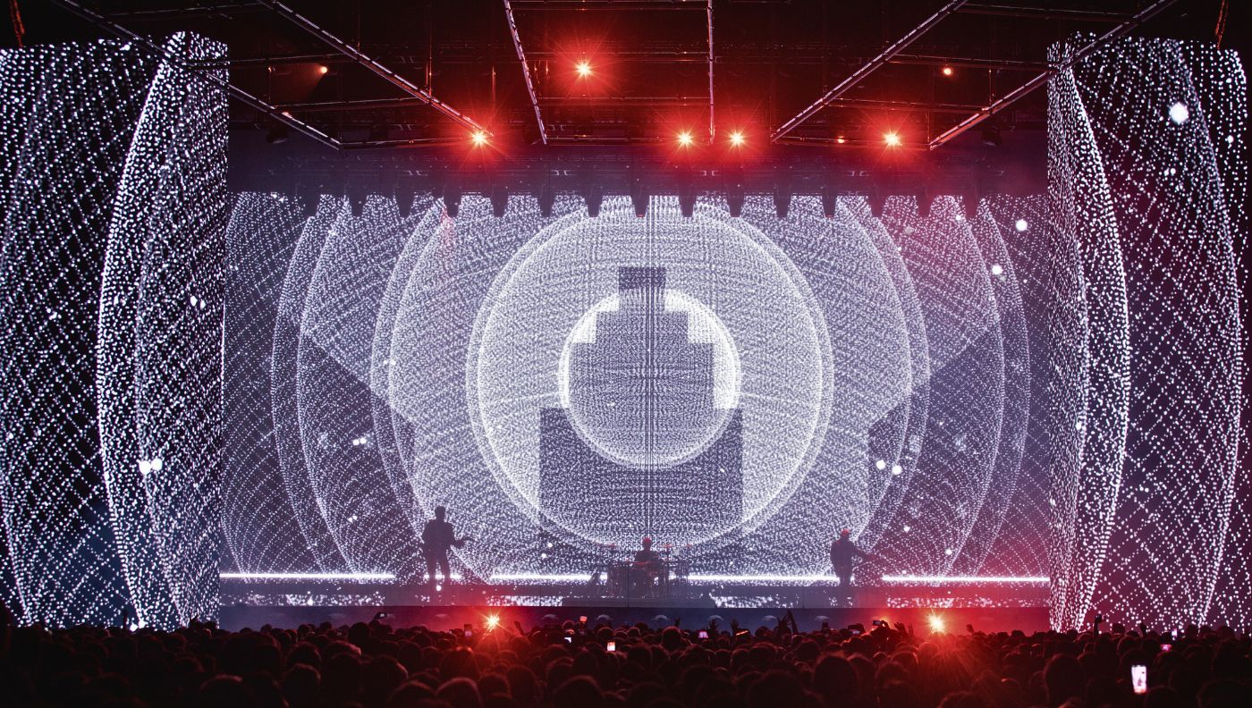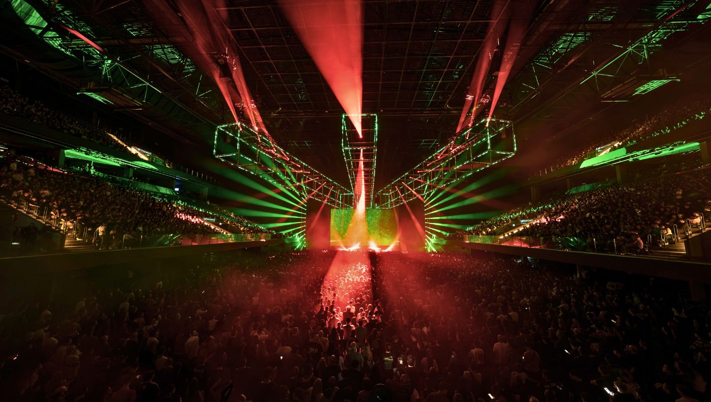 La propuesta contó con pasajes en 3D, como en “Cuando pase el temblor”, donde todo el Arena, con anteojos puestos, se sumergió en visuales que jugaron constantemente con el límite entre lo real y lo artificial. A lo largo de la noche, la voz de Gustavo apareció en distintos momentos, mientras Zeta y Charly eligieron enfocarse en su rol de músicos. Claro, nada podía fallar. Todo está medido, ensayado, diseñado al milímetro.