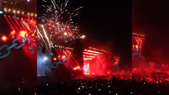 “Tocar para el público del Indio Solari es indescriptible”, le dijo hace un poquito Baltasar Comotto a Martin Ciccioli en una nota de esta emisora. Tan indescriptible como el momento en el que se escucha la voz y se lo ve al Indio en las pantallas del predio, una omnipresencia que eriza la piel, un efecto dominó que inundó a los presentes en varias canciones.
